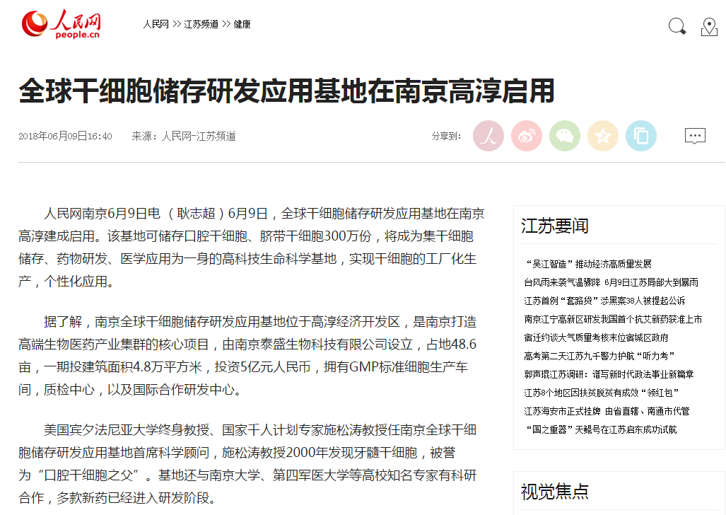 6月9日,全球干細(xì)胞儲(chǔ)存研發(fā)應(yīng)用基地在南京高淳建成啟用。該基地可儲(chǔ)存口腔干細(xì)胞、臍帶干細(xì)胞300萬份,將成為集干細(xì)胞儲(chǔ)存、藥物…